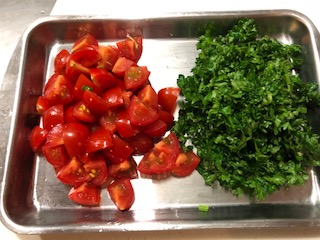 トマトは歯ごたえが残るくらいに、パセルも細かく切っておきます