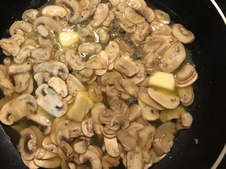 7.フライパンにあるマッシュルームに、バターを足し入れる