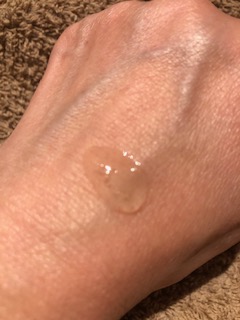 オールインワンセラムを先ずはワンプッシュ。非常にのびがよく、ワンプッシュでも手の甲と顔にも使用できますが、2~3プッシュでたっぷり使用と、気になるほうれい線への重ねづけや、首、デコルテにもおススメです。